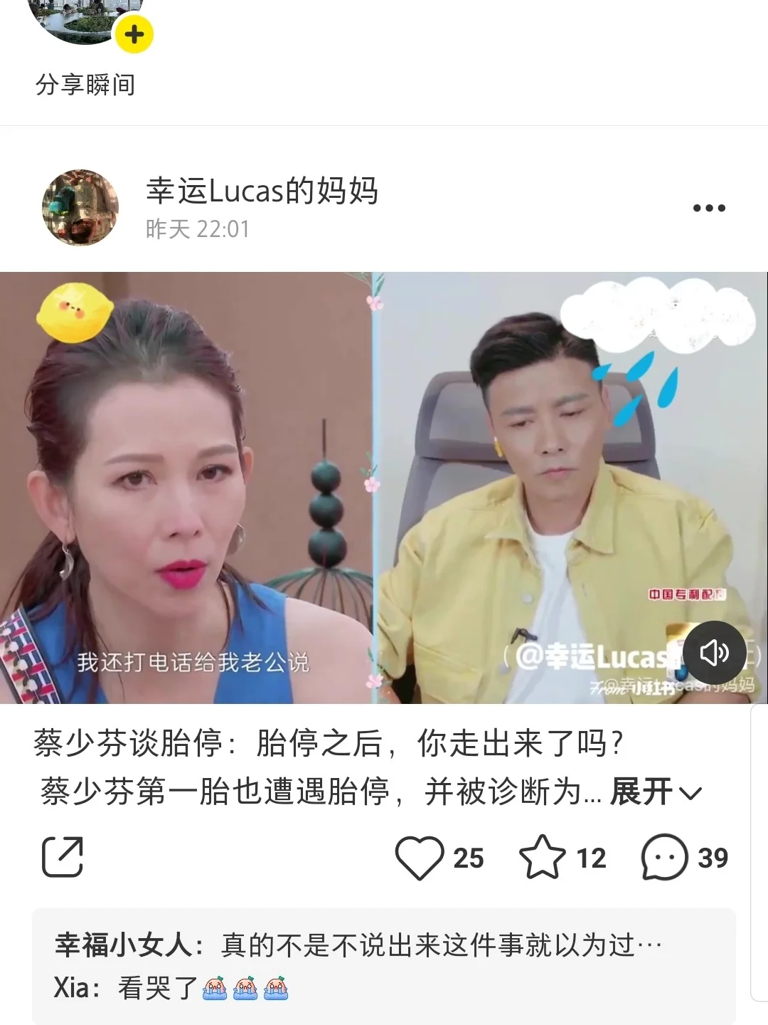 刚才看到我喜欢的一位博主发的蔡少芬谈胎停